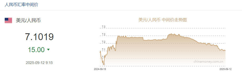 9月12日,元城中兑美元的价格为7,1019元,基本1